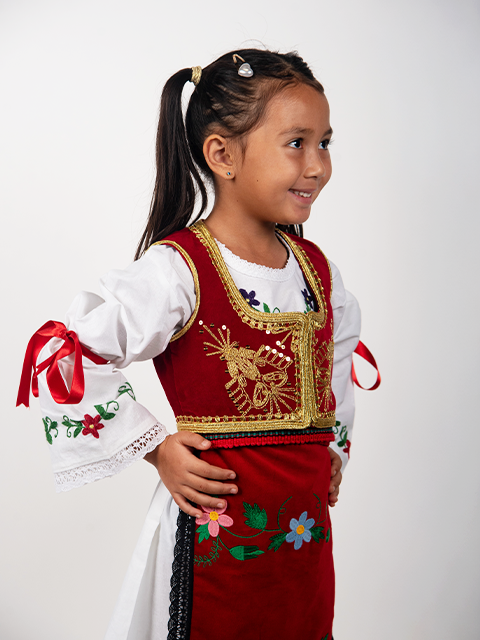 With respect for tradition, the Children’s Šumadija Costume with Red Vest, Model V with embroidery offers an authentic blend of folklore and comfort for the youngest. The vest and other costume elements are made from high-quality materials, comfortable and durable, perfect for folklore performances, celebrations, or school events. It allows little guardians of tradition and folklore to wear their heritage with pride.