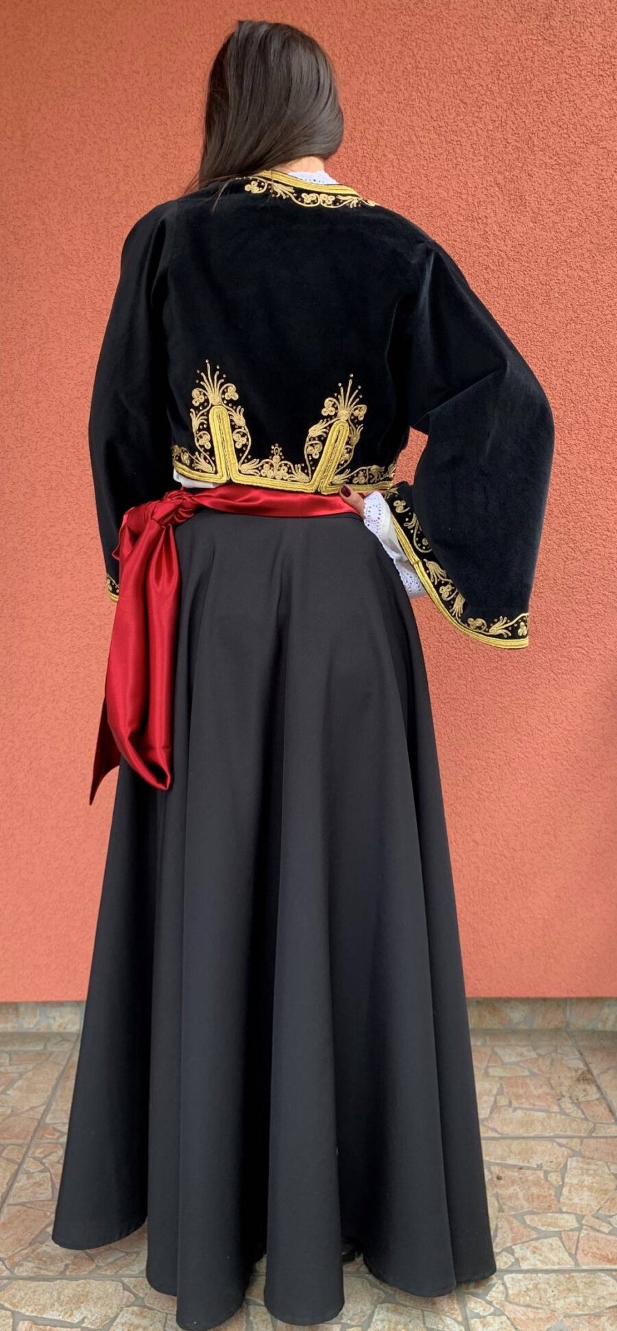 За дужину хаљине, сукње или панталона, мерите од врха рамена до жељеног краја одеће (нпр. до колена, до пода, или до средине листа).