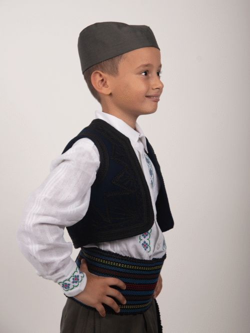 Sa željom da tradicija živi i kroz najmlađe, Radionica Kiri izrađuje dečije narodne nošnje sa istom pažnjom, ljubavlju i posvećenošću kao i nošnje za odrasle. Svaki komad je ručno rađen, udoban i prilagođen detetu — da mali čuvari naše tradicije mogu s ponosom da je nose, bilo na priredbi, proslavi ili u igri.